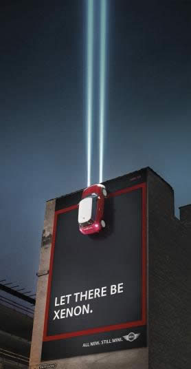 Untuk peluncuran MINI baru, dengan fitur array besar diperbarui, di antara mereka lebih kuat lampu Bi-Xenon, sebuah MINI dipasang pada sisi dinding. Lalu lampu 2500 watt diletakkan di atas papan yang menembus sampai ke tingkat stratosfer terbawah