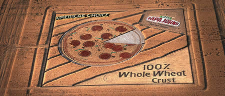 Jika Anda terbang di dalam atau keluar dari Bandar Udara Internasional Denver, melihat ke luar jendela dan Anda akan melihat sebuah pizza dipotong menjadi sebuah ladang gandum di dekat Barat 128 Avenue dan Pena Boulevard. Lingkaran tanaman, dirancang oleh seniman Stan Herd, merupakan promosi kendaraan untuk Papa John's Pizza.